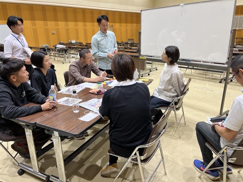 共有してもらった事例について、参加者は関心のある事例に分かれて、講師がファシリテーターとなり対話を行いました。それぞれのテーブルで、事例を聞いて「いいなと思ったところ」や「自分の地域や活動で活かすための質問」などについて活発な意見交換が行われ、充実した対話の場となりました。